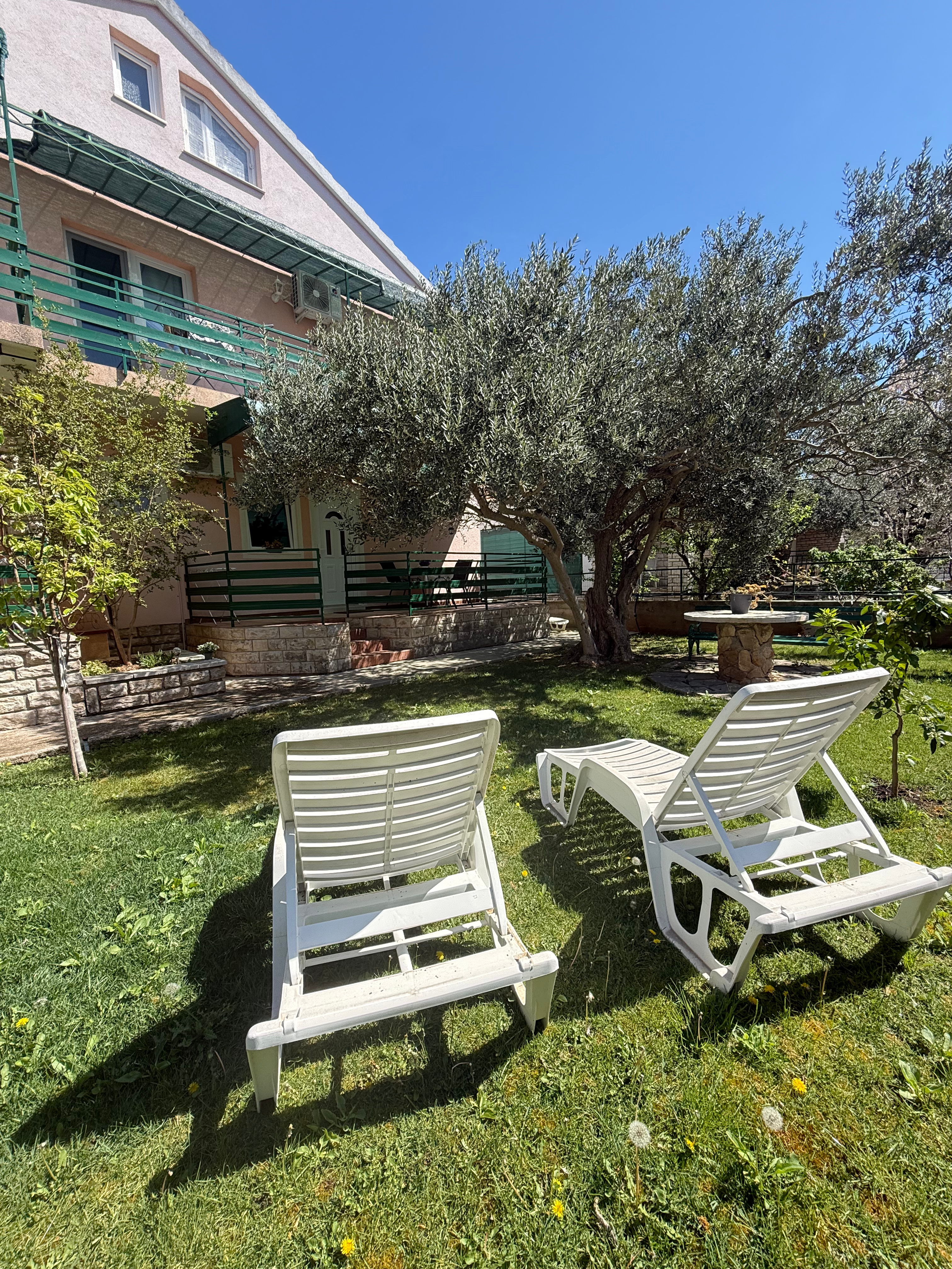Udoban apartman idealan za parove ili manje obitelji. Nalazi se u mirnom dijelu grada, svega 5 minuta hoda od plaže s pogledom i izlazom u vrt.